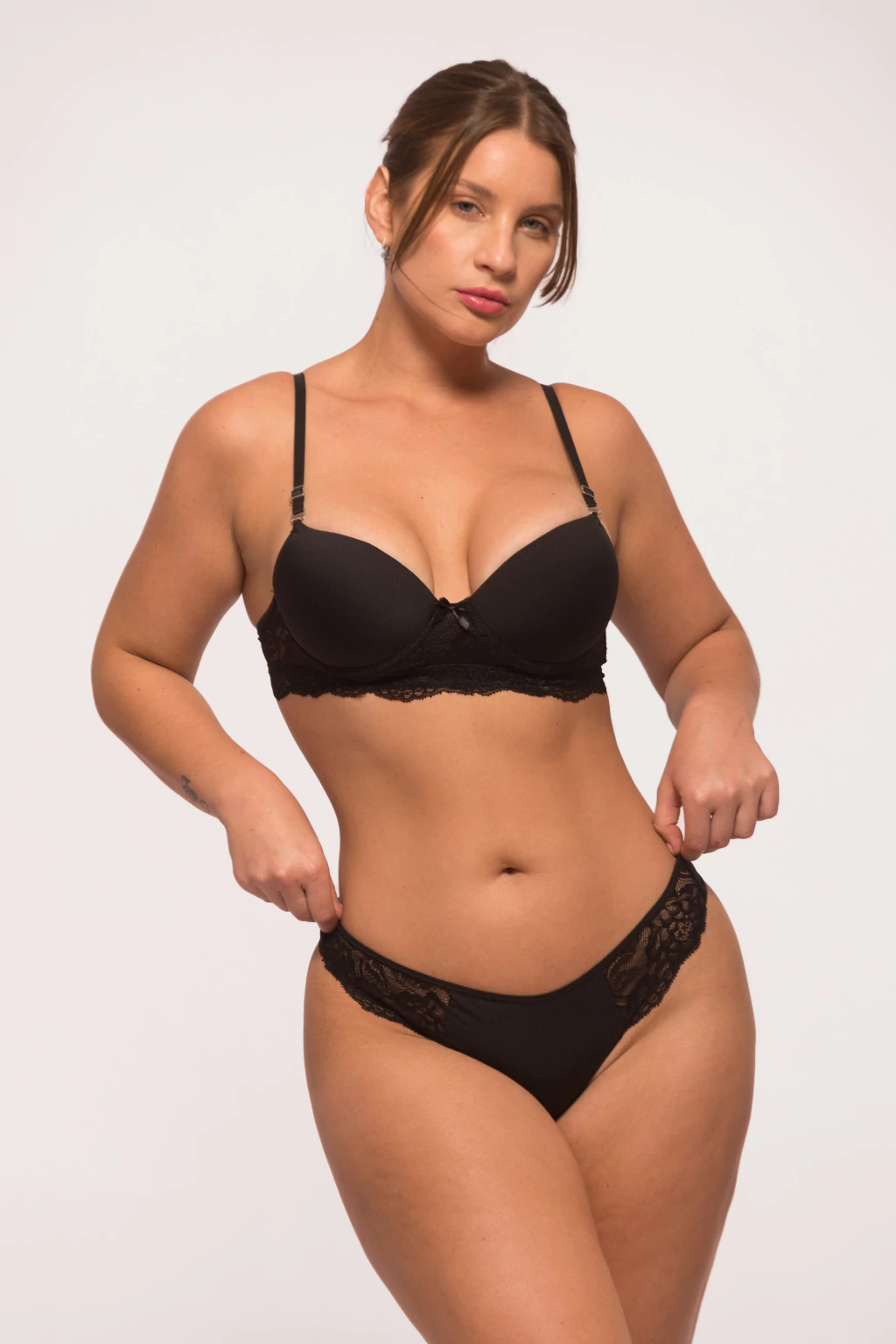 ♥ Corpiño de microfibra y puntilla. Armado con taza soft , aro y coleta.